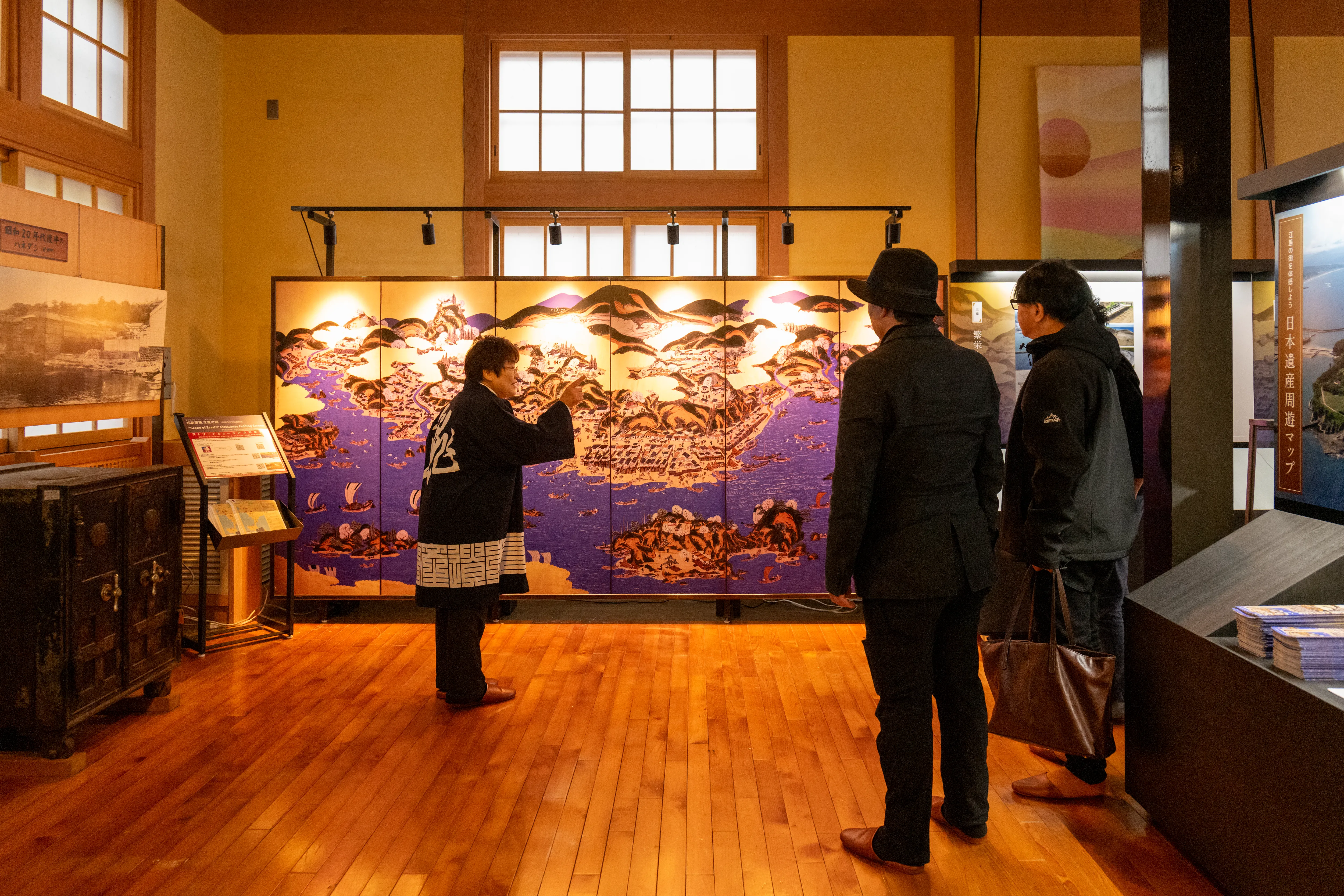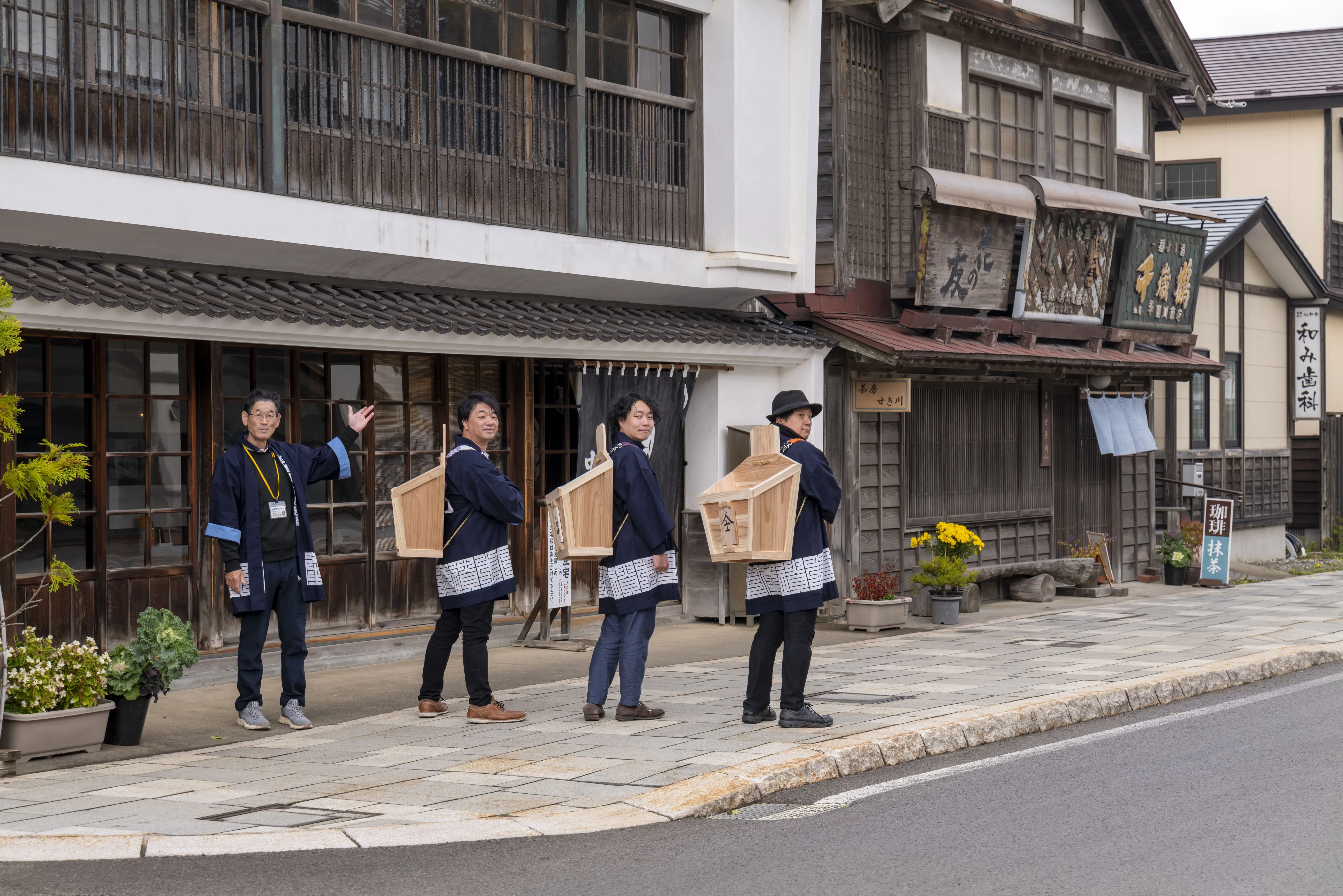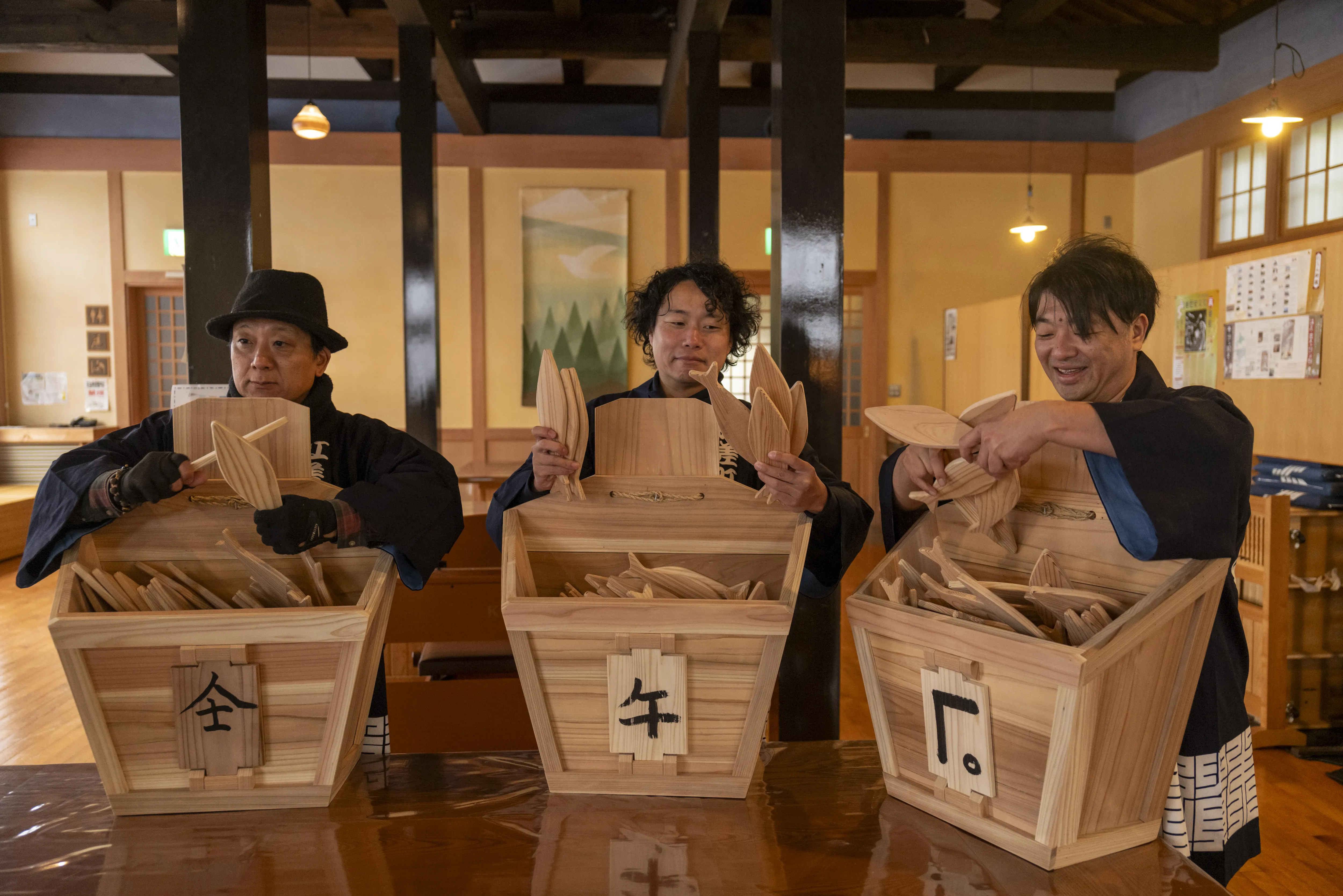 During the Edo period, Esashi flourished through the herring trade carried by Kitamaebune merchant ships. This guided tour offers participants the chance to step into the shoes of townspeople of that era and experience their work and daily lives firsthand. The tour begins at a facility that introduces the story of Esashi as a Japan Heritage site, where participants learn about the town’s history and culture through Esashi folding screens and exhibition panels. Participants then actually carry a traditional wooden backpack container called a mokko, once used to transport herring, load it with wooden herring replicas, and walk along the historic Inishie Kaidō road to the Former Nakamura Residence, a nationally designated Important Cultural Property. At the unloading storehouse known as the Hanedashi, participants unload the herring and receive a banbō, a wooden token that served as proof of work in those days. Presenting this token allows participants to enjoy services at facilities around the town. The tour also includes painting a shop name (yagō) to mark ownership of the mokko and experiencing a weight close to that of the real loads used in the past. This approximately 100-minute journey allows visitors to relive the history and prosperity of Esashi through its historic streetscape.