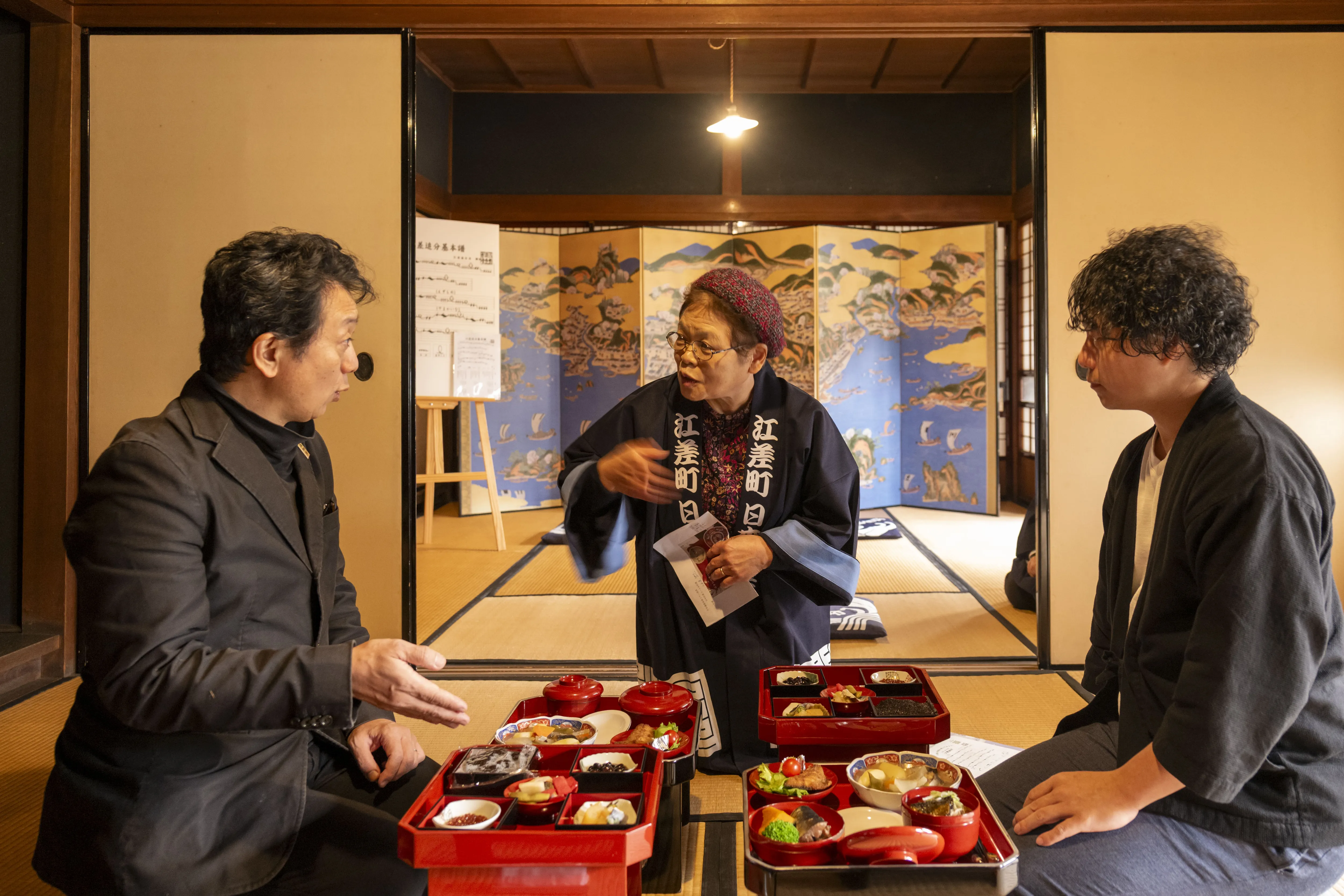 The tatami room of The Former Nakamura Family Merchant House where you enjoy the local cuisine and Esashi Oiwake, is a special space that is usually not available for private use. After the experience, you may relax freely in this room for up to 2 hours.