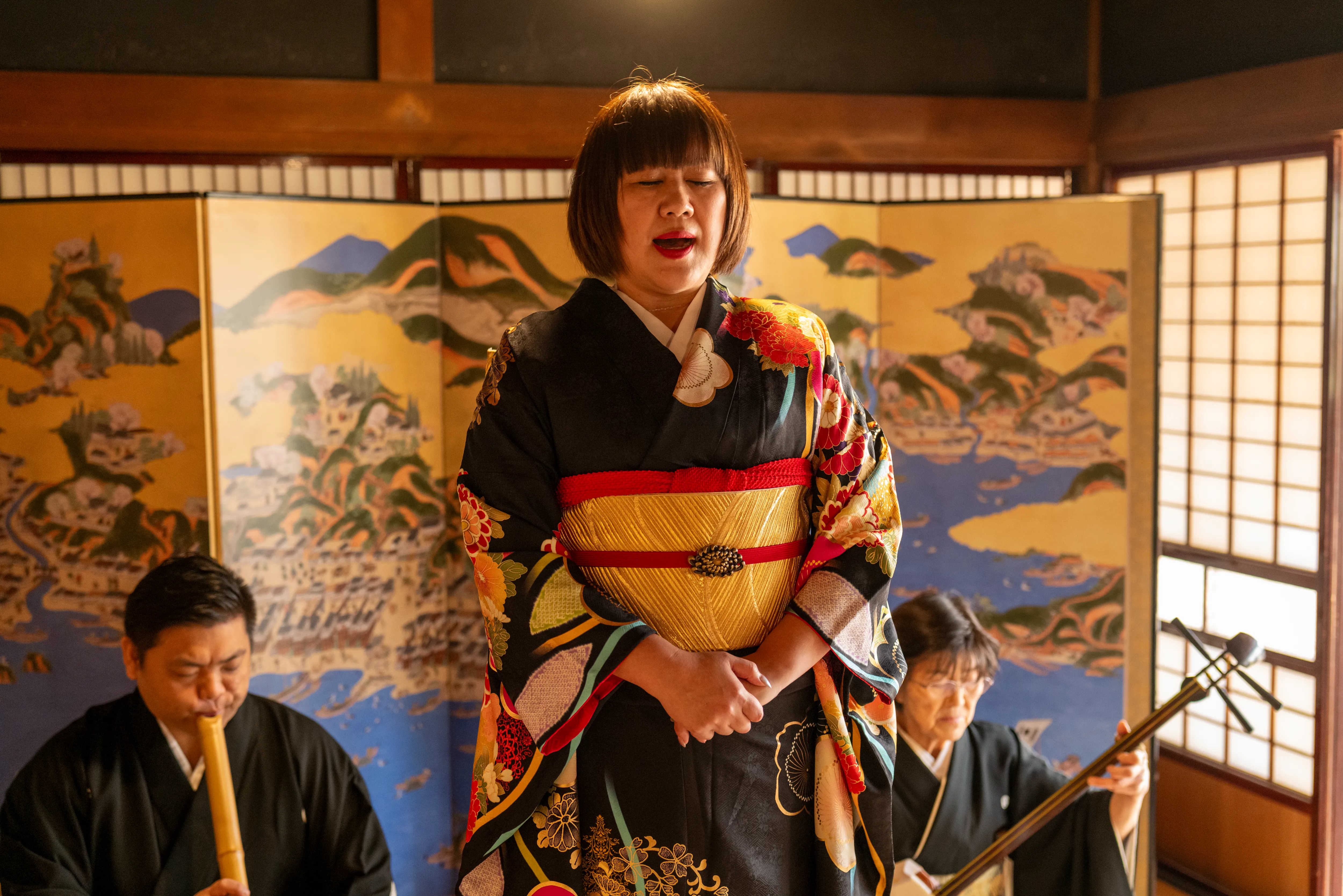 Esashi Oiwake is said to “captivate you at first listen, intoxicate you the second time, and move you to tears the third time.” Enjoy this enchanting folk song performed live by three musicians on vocals, shakuhachi (bamboo flute), and shamisen.