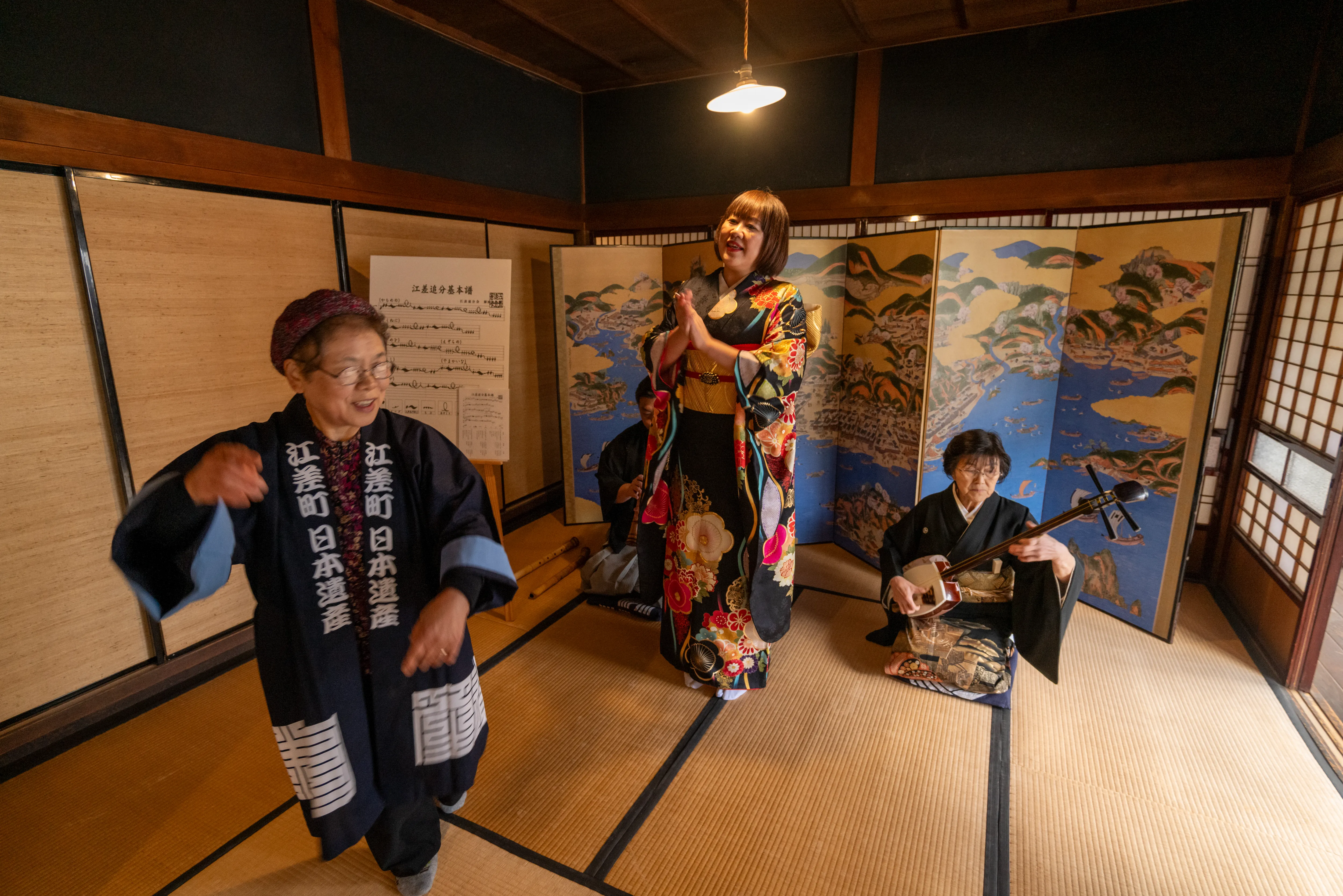 This is a special, once-a-month experience tour where you can enjoy Esashi’s local cuisine and live performances of Esashi Oiwake at The Former Nakamura Family Merchant House designated Important Cultural Property that is usually not open for private use. Guided by a knowledgeable guide, you will first learn about the history and culture of Esashi Town. Then, on the second floor of The Former Nakamura Family Merchant House, you can slowly savor local dishes prepared specially for the day, including herring cuisine. To complete the experience, enjoy live performances of Esashi Oiwake, one of Japan’s three major folk songs, performed by three musicians on vocals, shakuhachi (bamboo flute), and shamisen. In the special tatami room where important business negotiations once took place, immerse yourself in the history and culture of Esashi while savoring this unique and memorable moment.